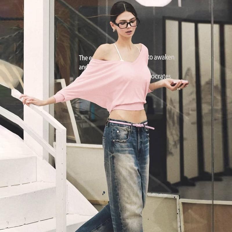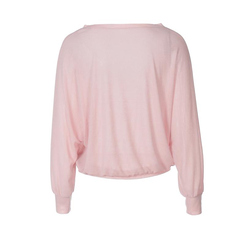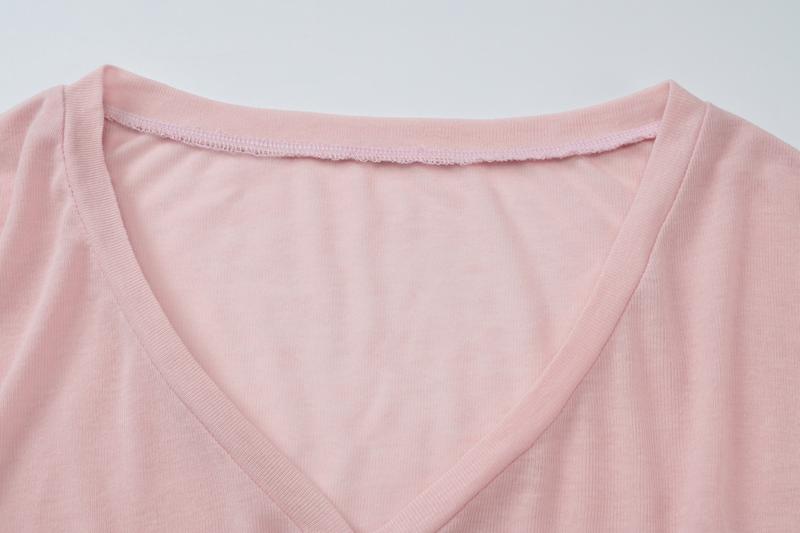 Women's Solid Color Sheer V Neck Long Sleeve Loose-Fit T-Shirt Top