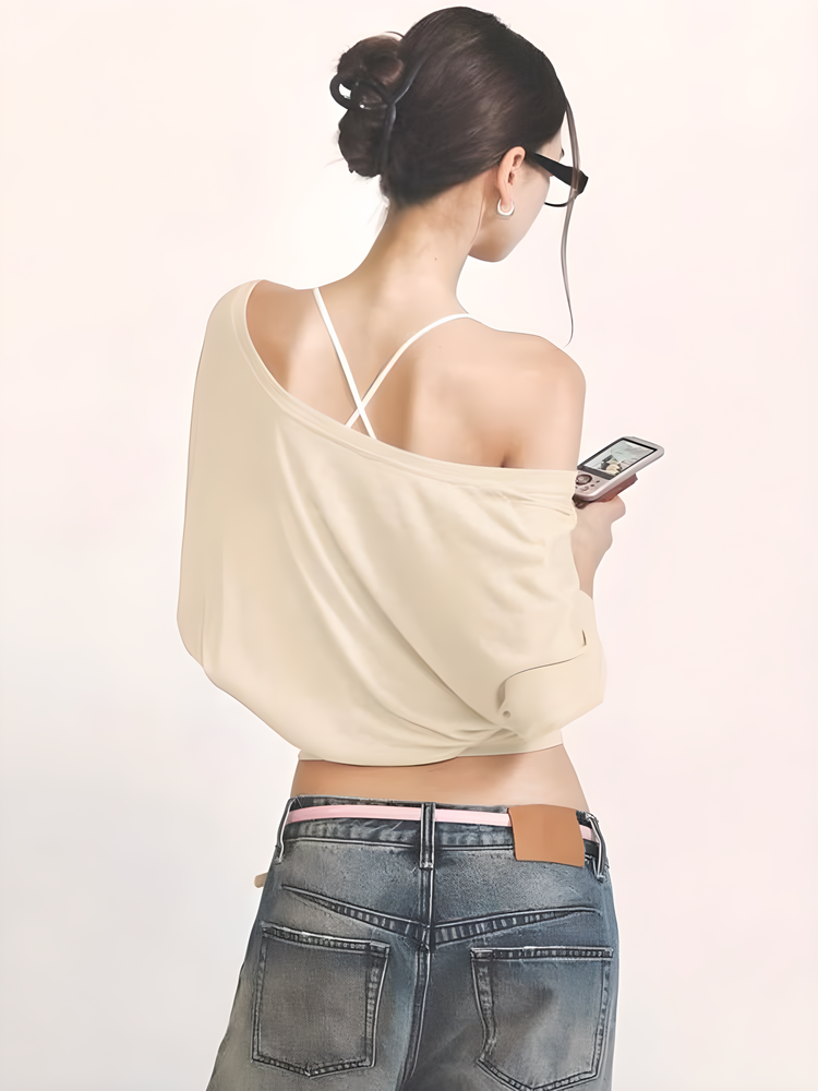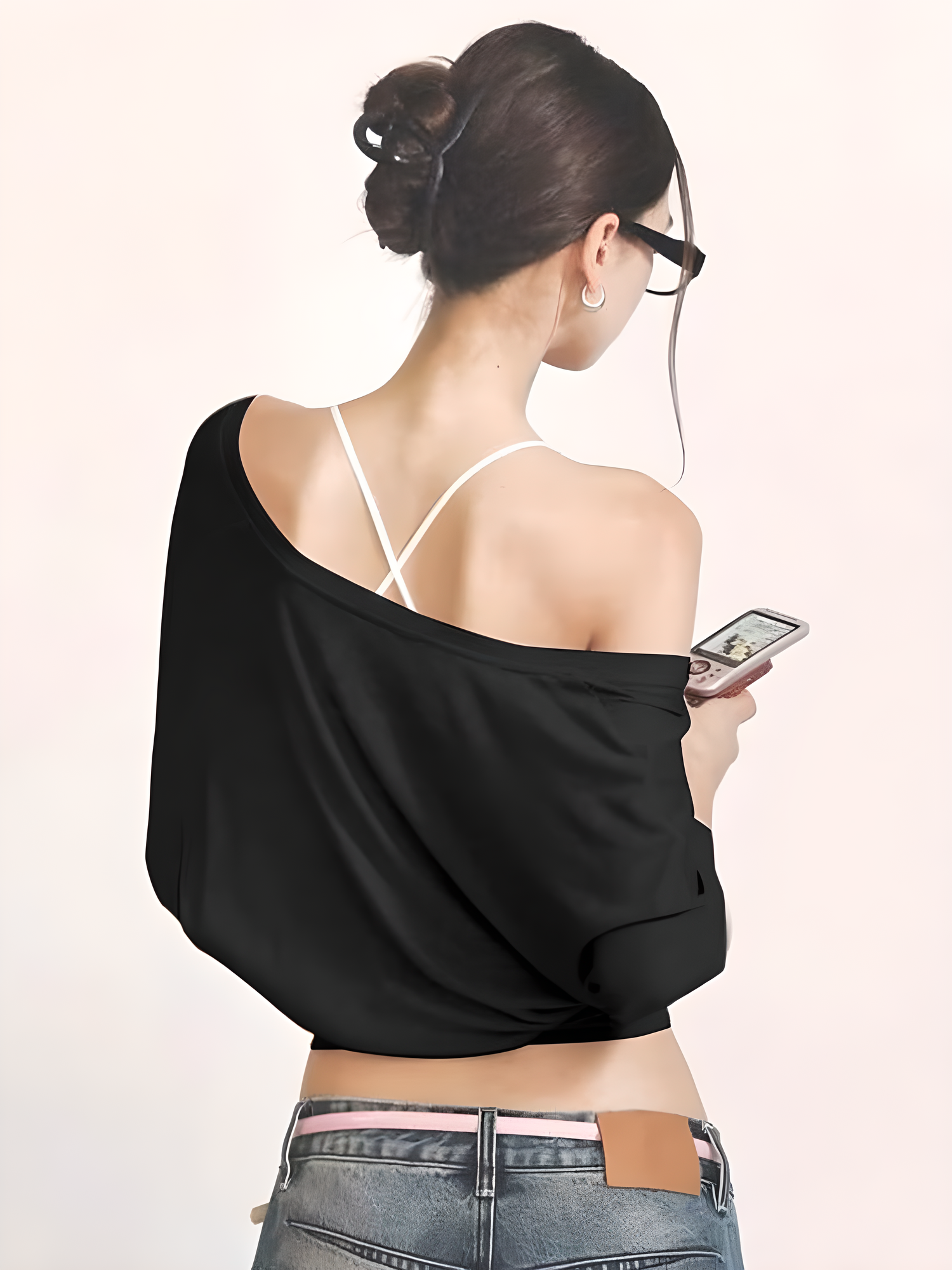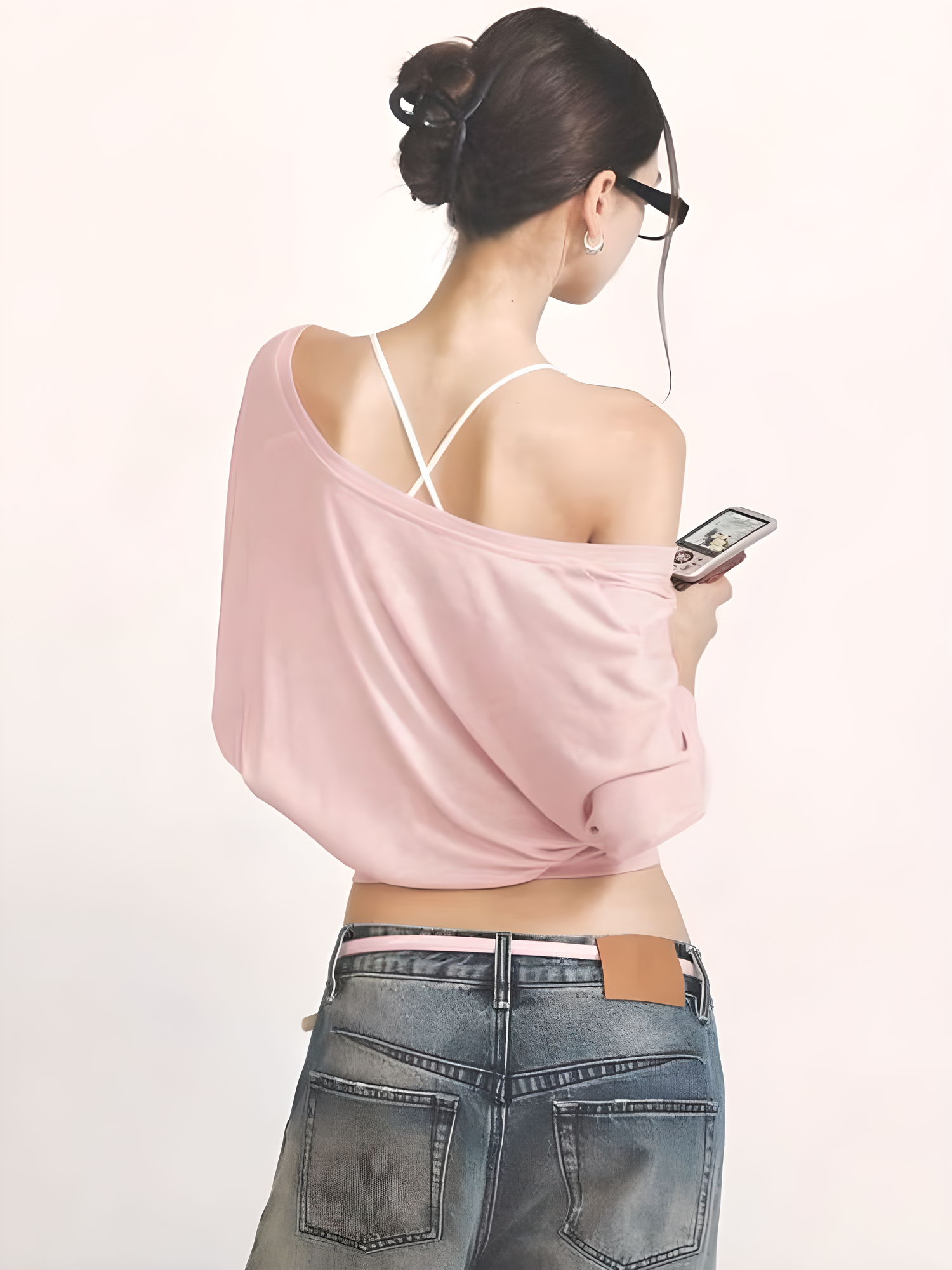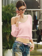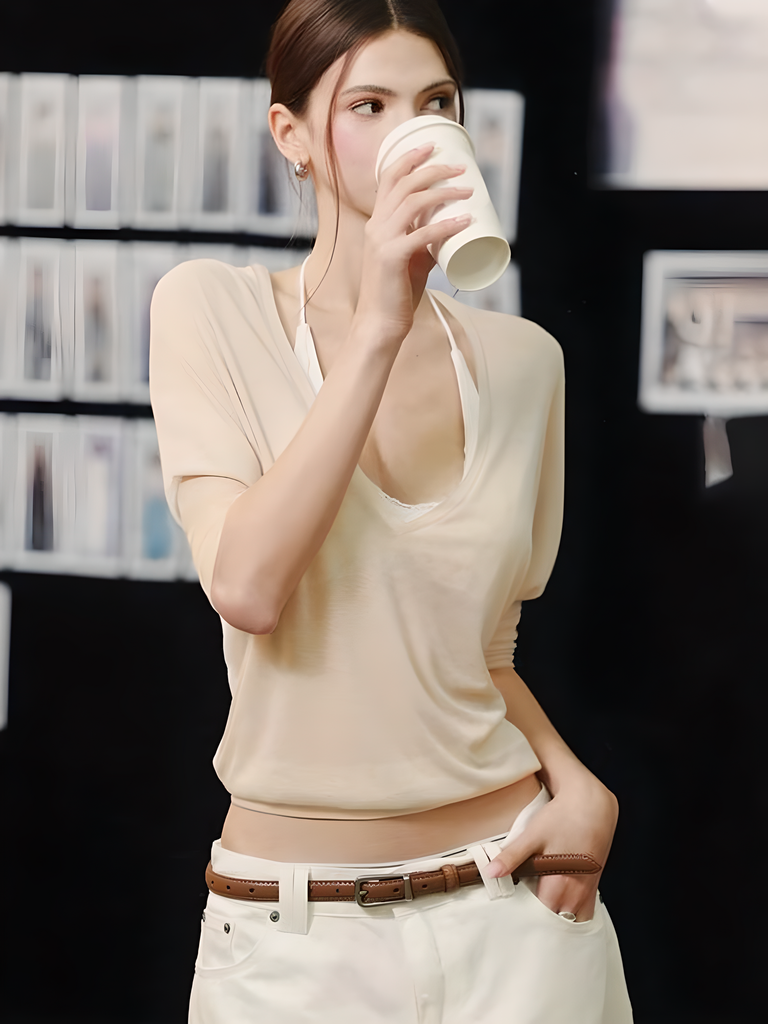 Women's Solid Color Sheer V Neck Long Sleeve Loose-Fit T-Shirt Top